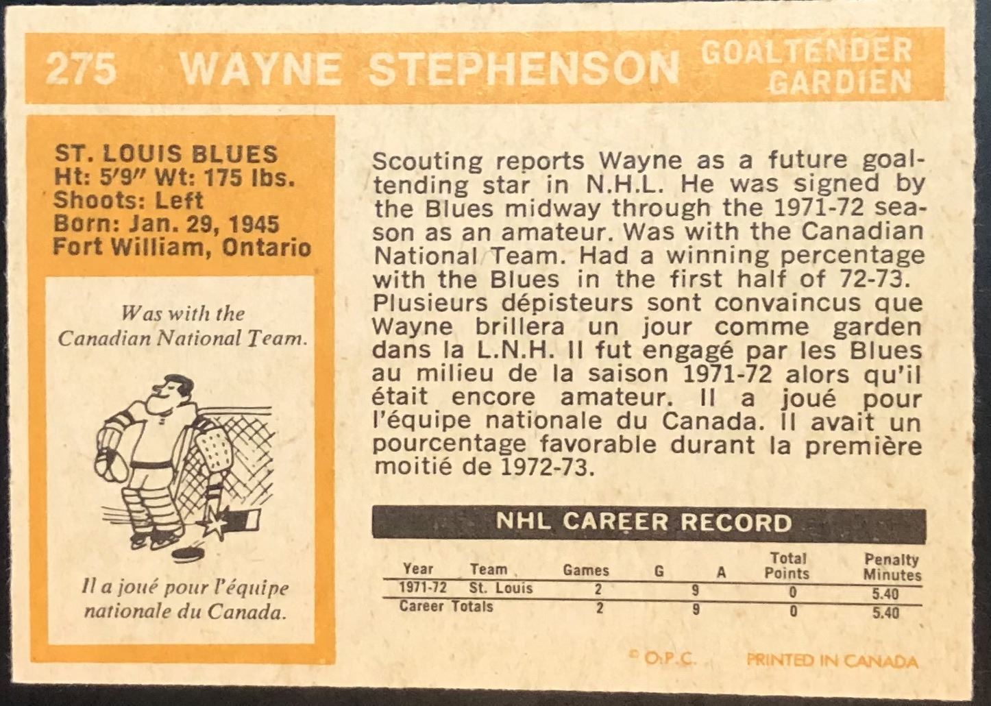 Card #275                                hockey, OPC, vintage, rookie
