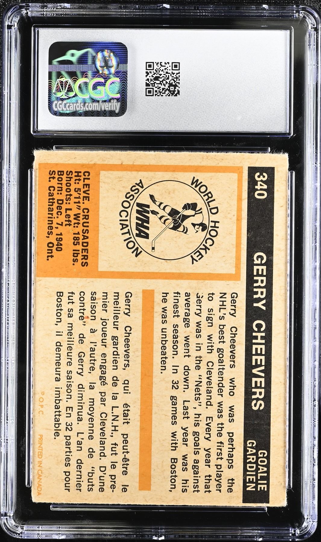 HOFer and new WHA star, Gerry Cheevers, from the high number WHA run, graded 2 GD by CGC.