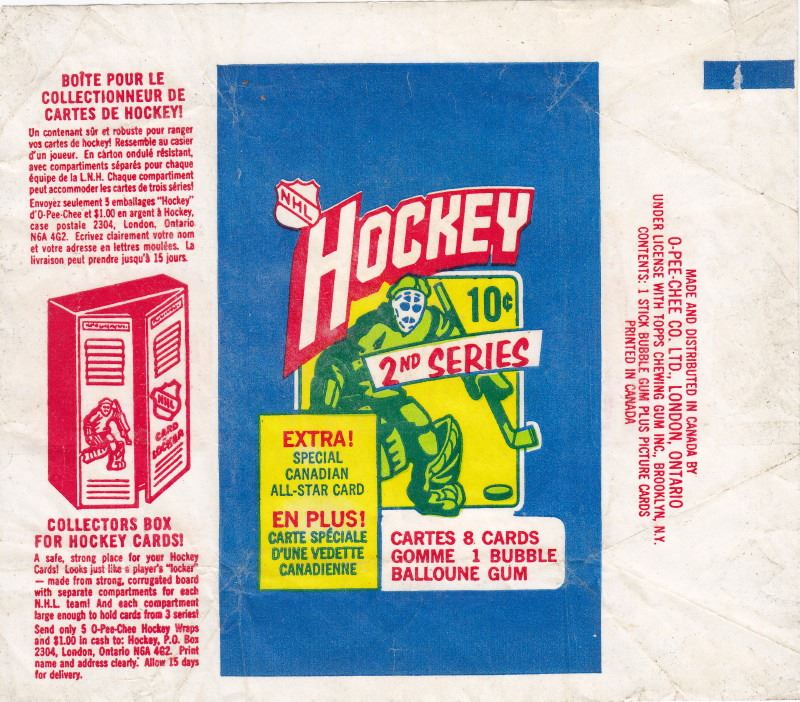 1972 - 73 OPC NHL Hockey Wrapper - Held 8 Cards & 1 Bubble Gum -- Has A 1" Tear Top Right Corner