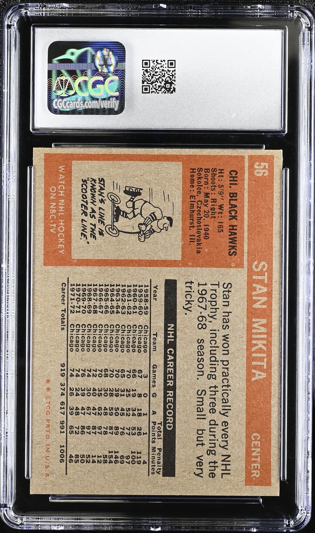 HOFer Mikita's Topps card from 1972-73, graded a superior 8 NM-MT by CGC!
