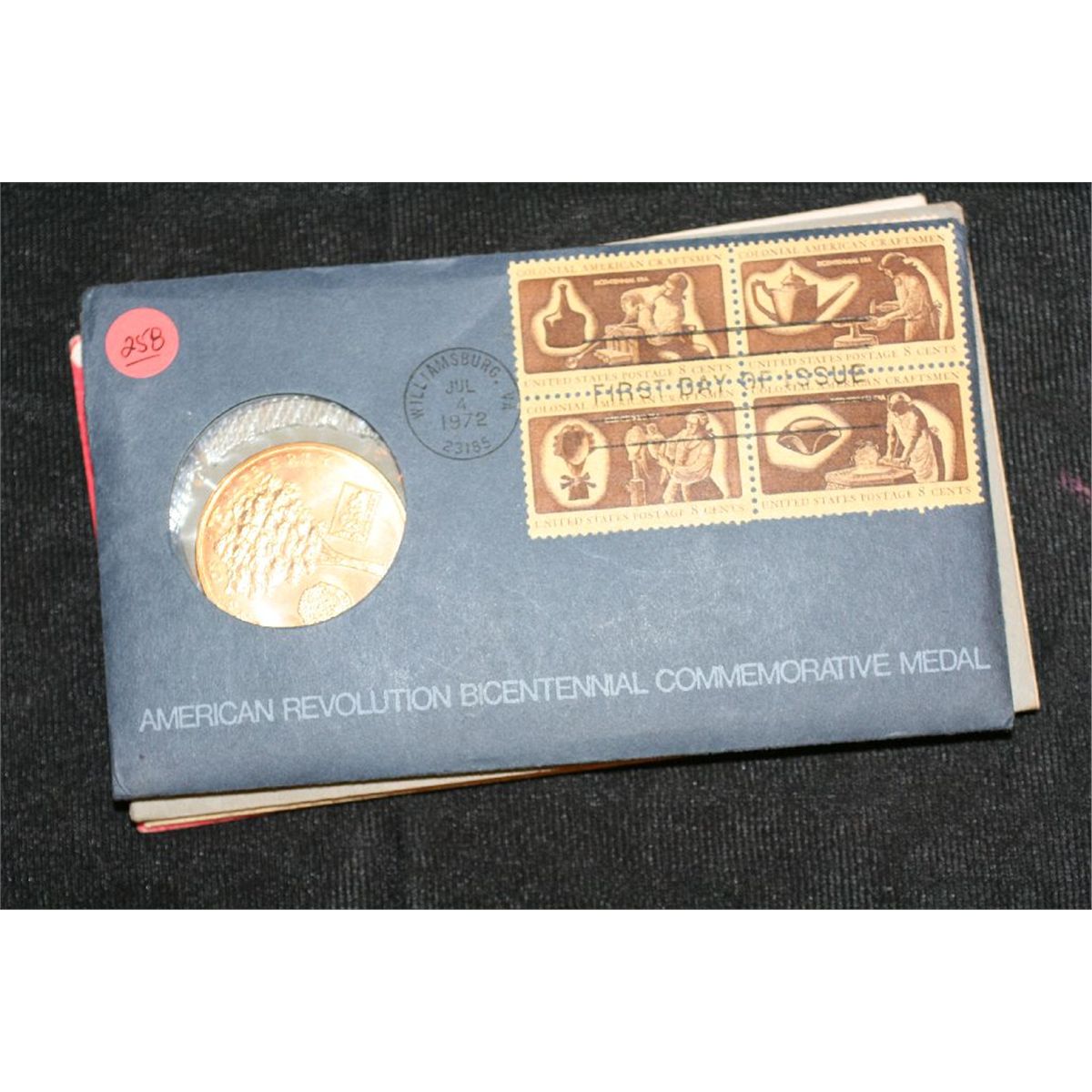 1972 American Revolution Bicentennial Commemorative Medal & First Day Issue Stamps