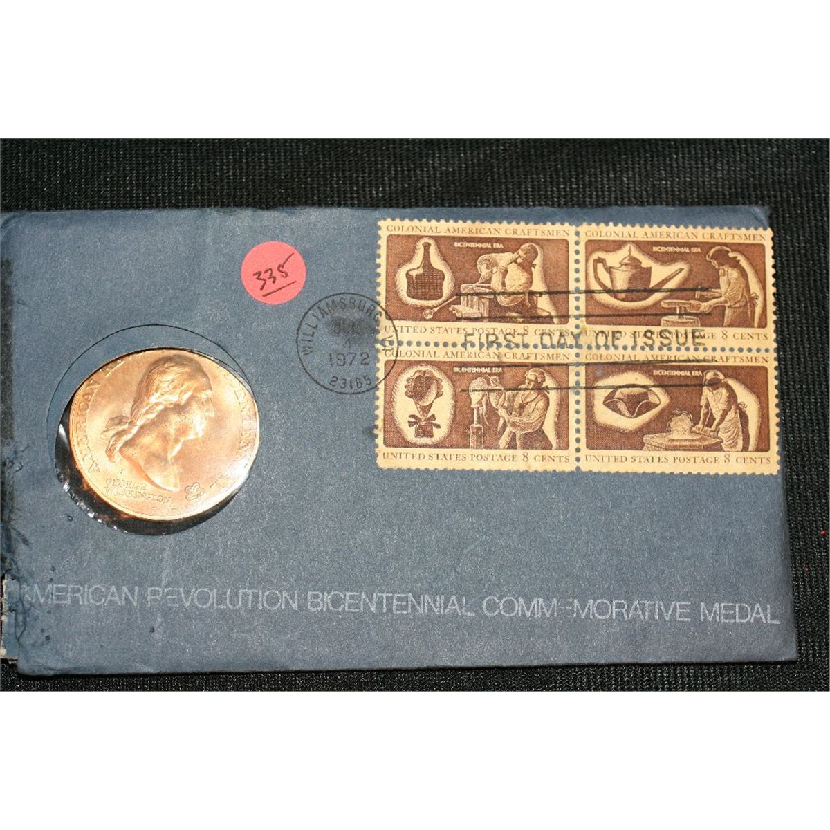 1972 American Revolution Bicentennial Commemorative Medal & First Day Issue Stamps