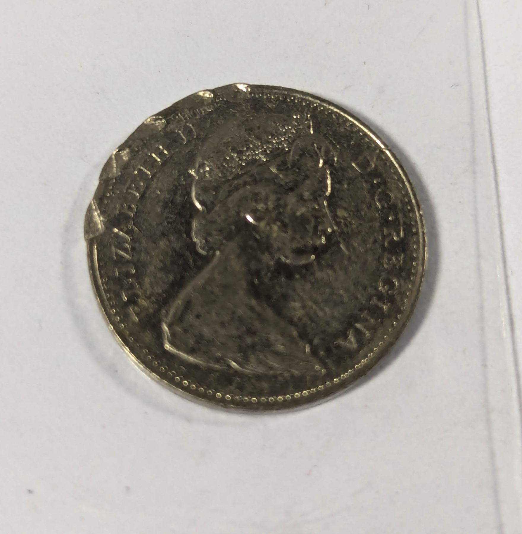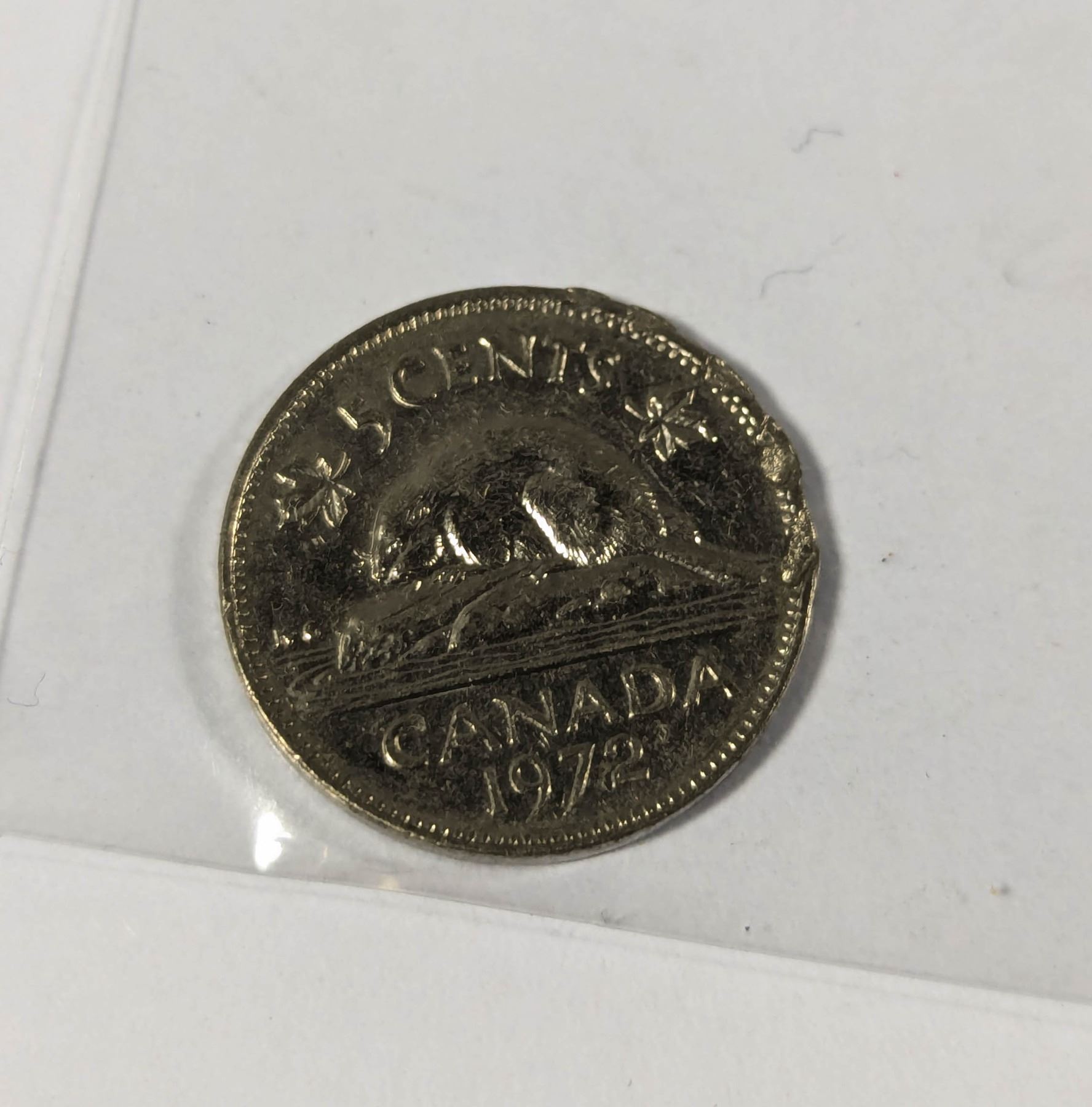 1972 CANADA 5 CENTS COIN, MINT ERROR DAMAGE