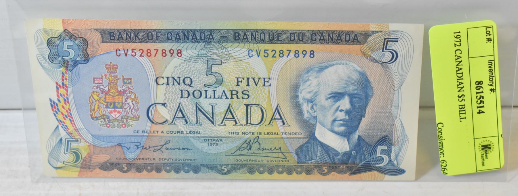 1972 CANADIAN $5 BILL