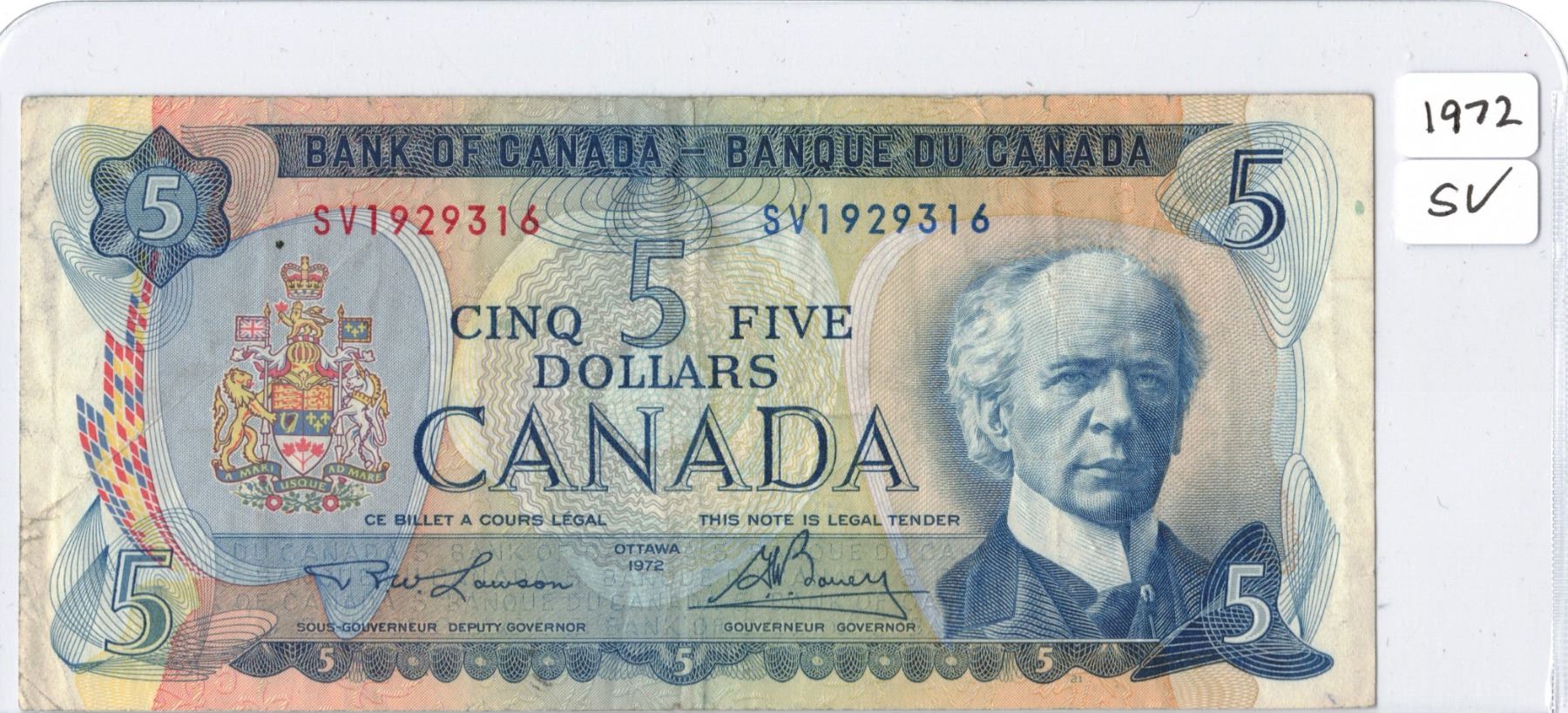1972 Canadian Five Dollar Bank Note