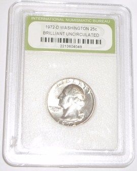 1972 D Quarter BU *graded by INB* ***Coin, Currency & All Items Listed in this auction - Grades, Conditions and Values are not Safe Deposit Coins LLC Responsibilty. Grades, Condition and Values are determined by Consigner(s) & Buyers ONLY***