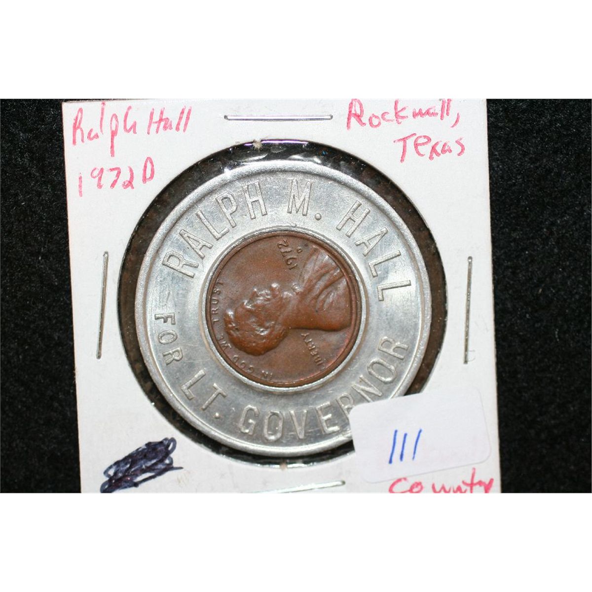 1972-D Ralph Hall for Lt. Governor campaign token w/penny
