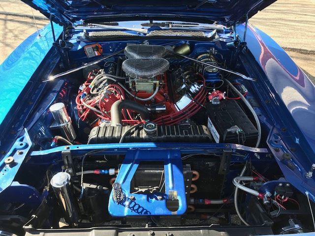 Stock code G 318 v/8 is replaced with the 426 Hemi crate engine, date stamped #7D 1 OA, Holley dual 4-bbl carbs, air/cleaner on the Edlebrock alum intake, MSD dist ignition, starter, polished alternator Sandens air-compressor, external oil filter system all in exc. cond. -All components in compartment of the stock h.duty rad., shroud, condenser, w. washers, hoses wiring, all painted detailed in exc. cond.