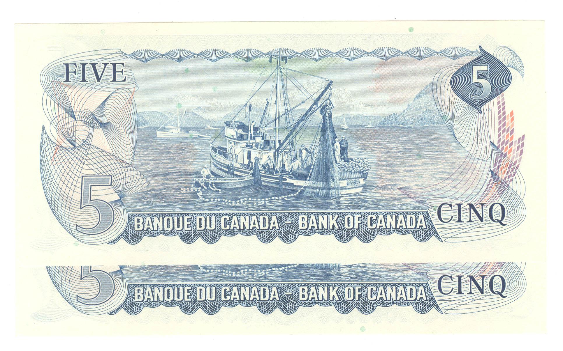 1972 Five Dollars Pair of consecutive Replacement, BC-48bA, 1 Choice UNC and 1 GEM UNC, Lawson Bouey, serial *SL2271250-51.