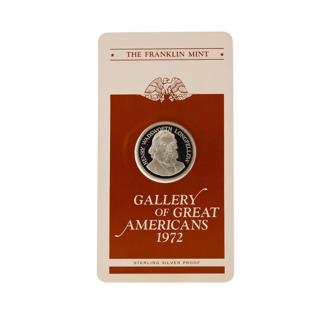 One 1972 Franklin Mint Henry Wadsworth Longfellow Sterling Silver Proof Medal.