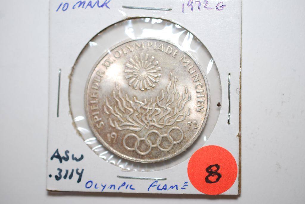1972-G German 10 Deutsche Mark Foreign Coin; Munich Olympics; .3114 ASW; EST. $10-25