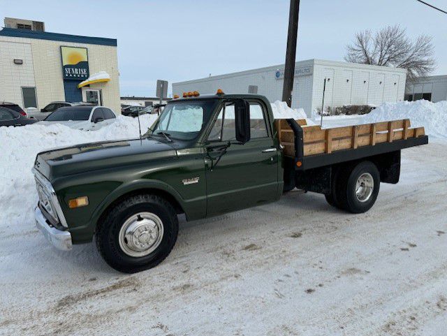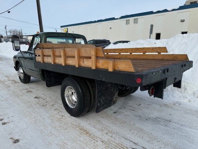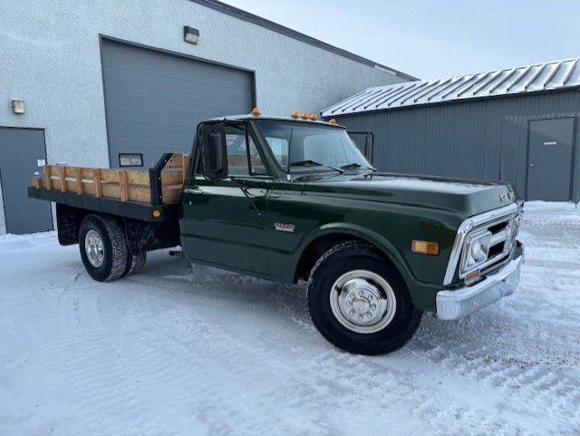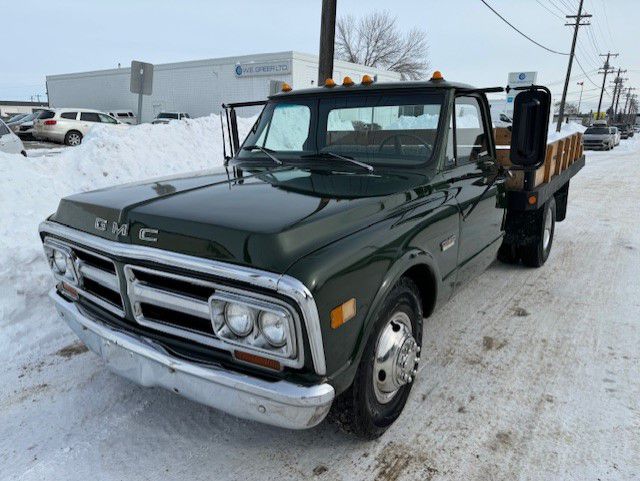 1972 GMC Flat Deck 1 Ton dually, small block with a 4 speed manual transmission, runs and drives great. Was used to haul water on an acreage. Body is very solid, and the interior is very original.