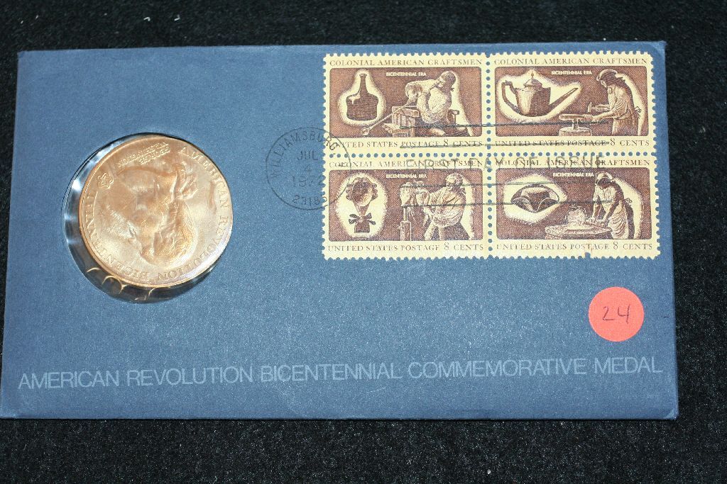 1972 George Washington American Revolution Bicentennial Commerative Medal W/Postal Stamps First Day Issue