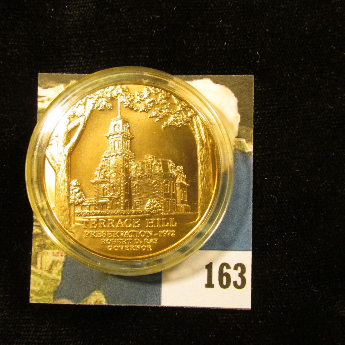 1972 High Relief Terrace Hill Bronze Preservation Medal, encapsulated and Gem BU. 39mm.