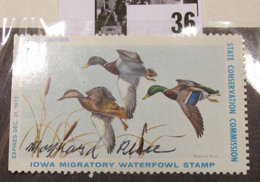 1972 Iowa State Conservation Commission Migratory Waterfowl Stamp, NH, VF, Signed by the Artist "Maynard Reece". IA 1