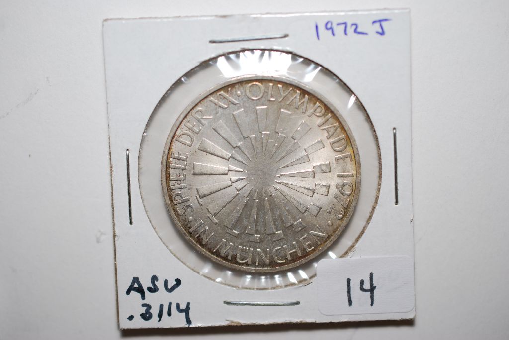 1972-J German 10 Deutsche Mark Foreign Coin; Munich Olympics; .3114 ASW; EST. $10-20