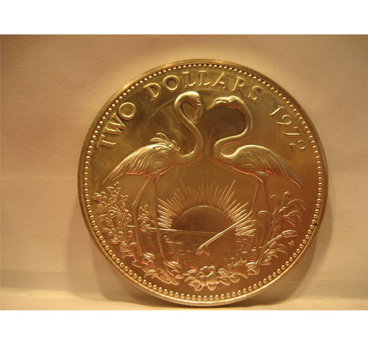 (1) 1972 LARGE STERLING SILVER Commonwealth of the Bahamas $2 Flamingo Coin
