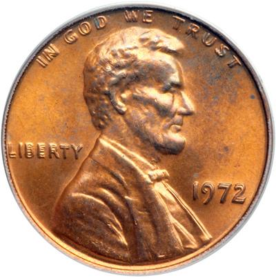 1972 Lincoln Cent. Doubled die obverse. PCGS graded MS-64 Red. Very clear doubling. An attractive near gem example (PCGS # 2950) .