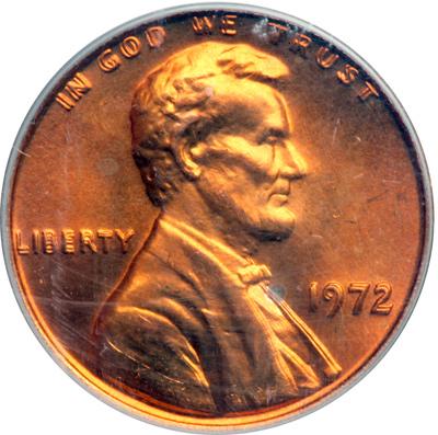 1972 Lincoln Cent. Doubled die obverse. PCGS graded MS-65 Red. Old Green Holder. A fiery mint red Lincoln with absolutely gorgeous colors (PCGS # 2950) .