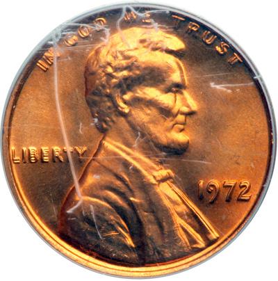 1972 Lincoln Cent. Doubled die obverse. PCGS graded MS-65 Red. A blazing red gem. Lots of pizzazz (PCGS # 2950) .