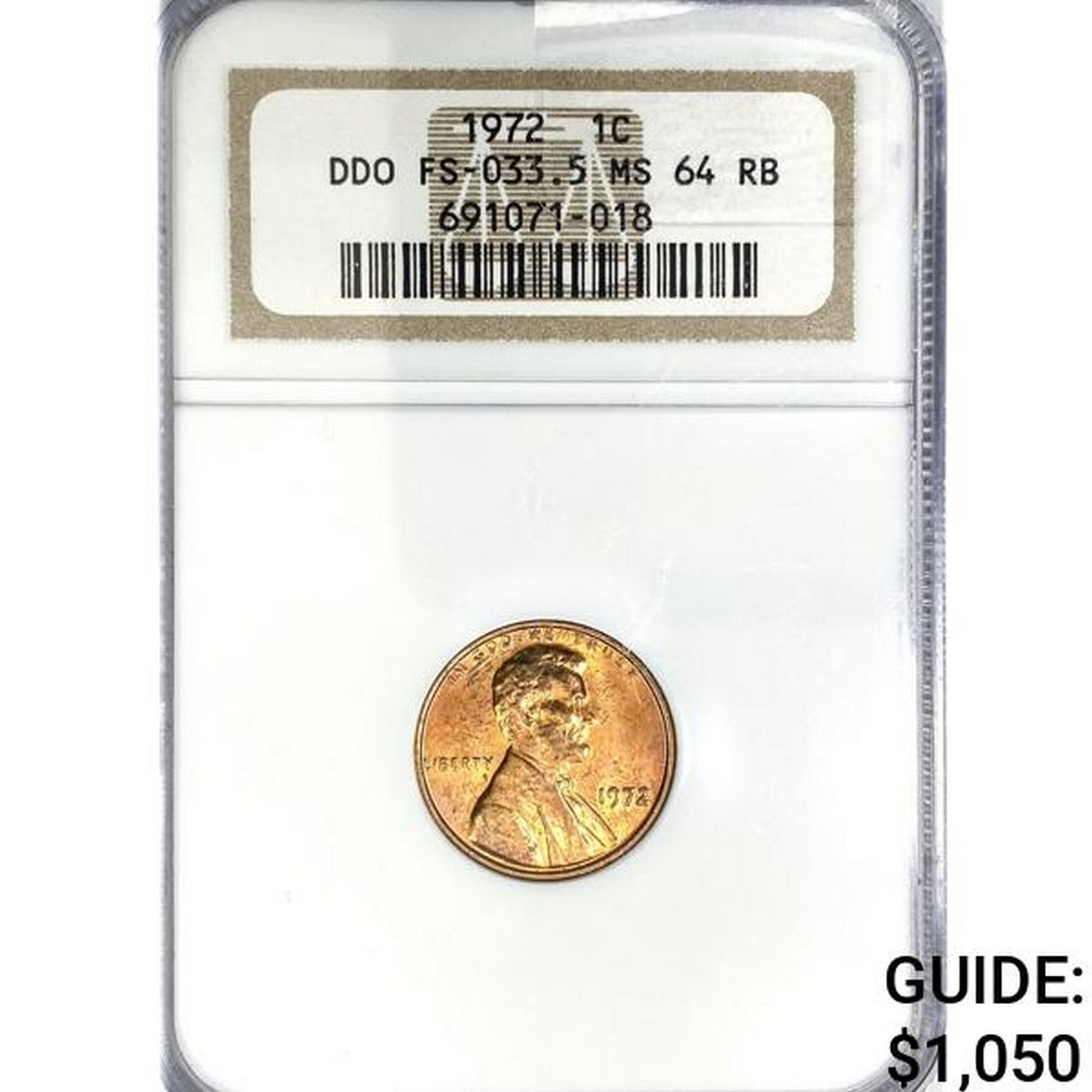 1972 Lincoln Memorial Cent NGC MS64 RB DDO FS-033