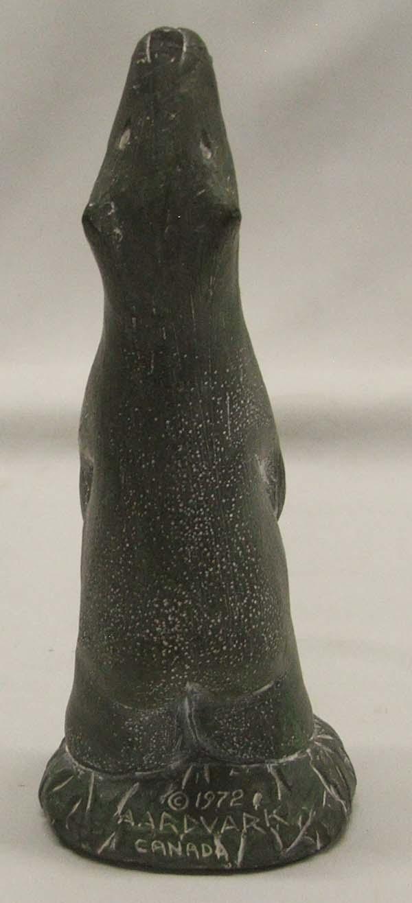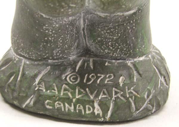 1972 Northwest Coast Carved Composition Bear. Measures approx. 7 3/4''H x 3''W x 2 1/3''D. Has on the back ''1972, AARDVARK, Canada''. Buyers Pay Actual Shipping and Handling Charges(see terms and conditions for more information)