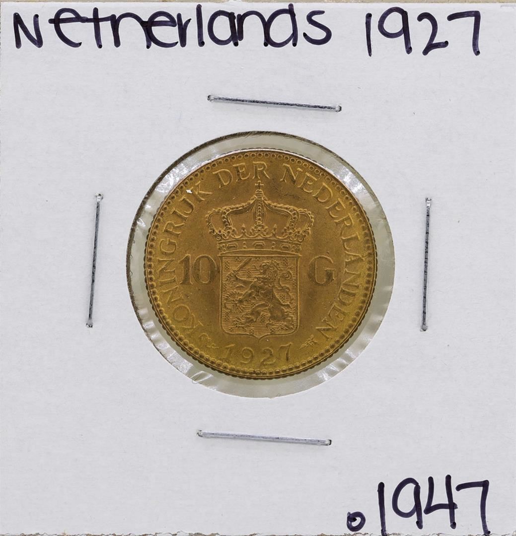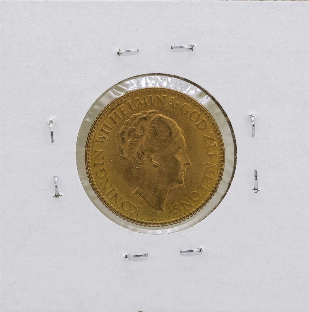 One 1972 Netherlands 10 Gulden Wilhelmina Gold Coin.