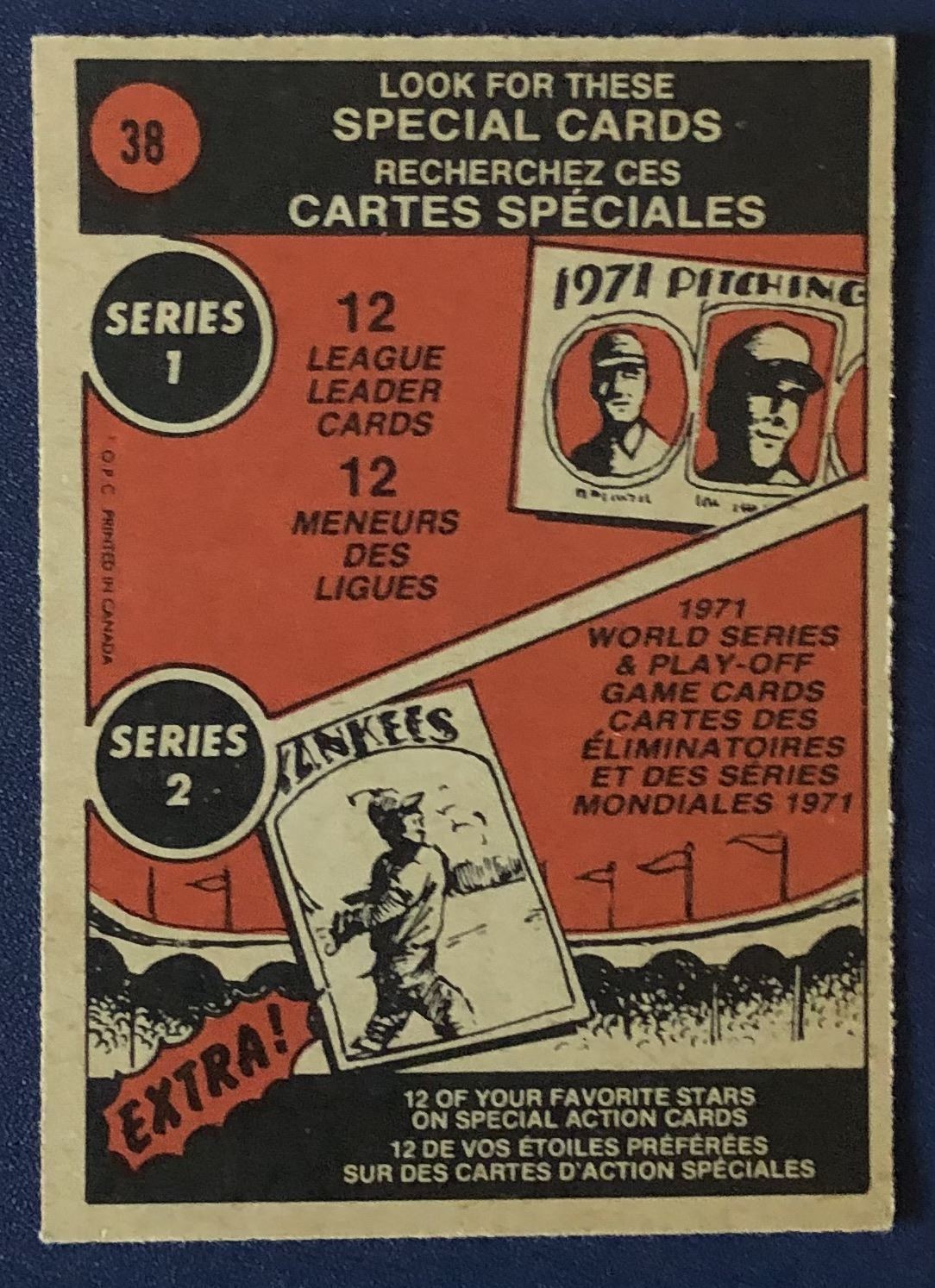 Card #38 vintage, MLB, baseball, hall of fame, OPC