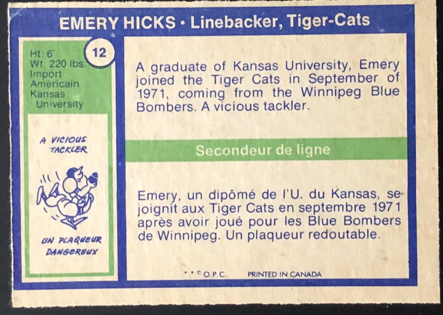 Card #12 football, vintage, OPC, rookie