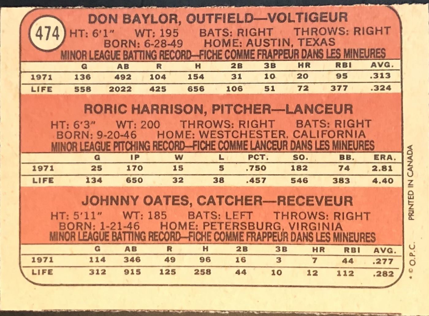 Card #474 MLB, baseball, OPC, vintage, rookie