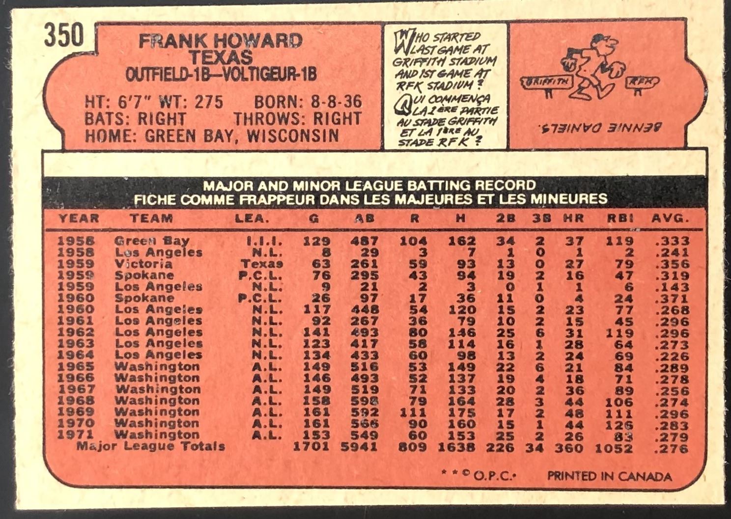 Card #350 OPC, vintage, MLB, baseball, hall of fame
