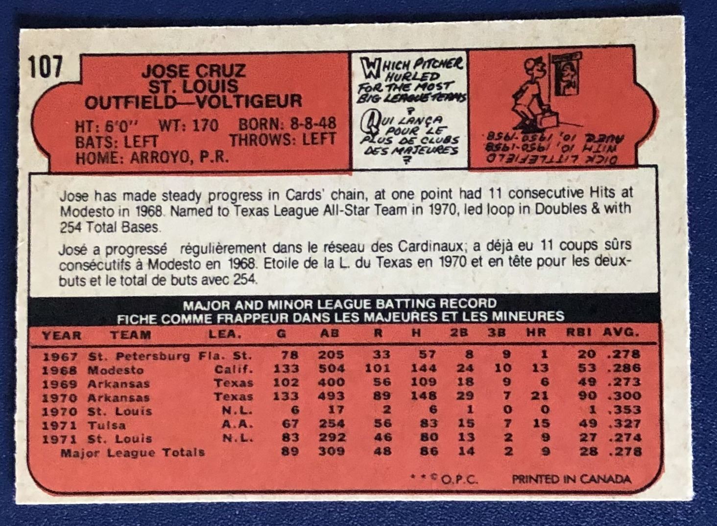 Card #107 vintage, MLB, baseball, rookie, OPC