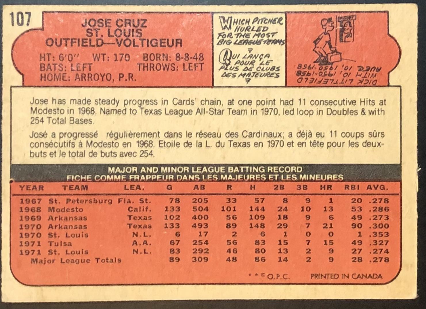 Card #107 MLB, baseball, vintage, OPC, rookie