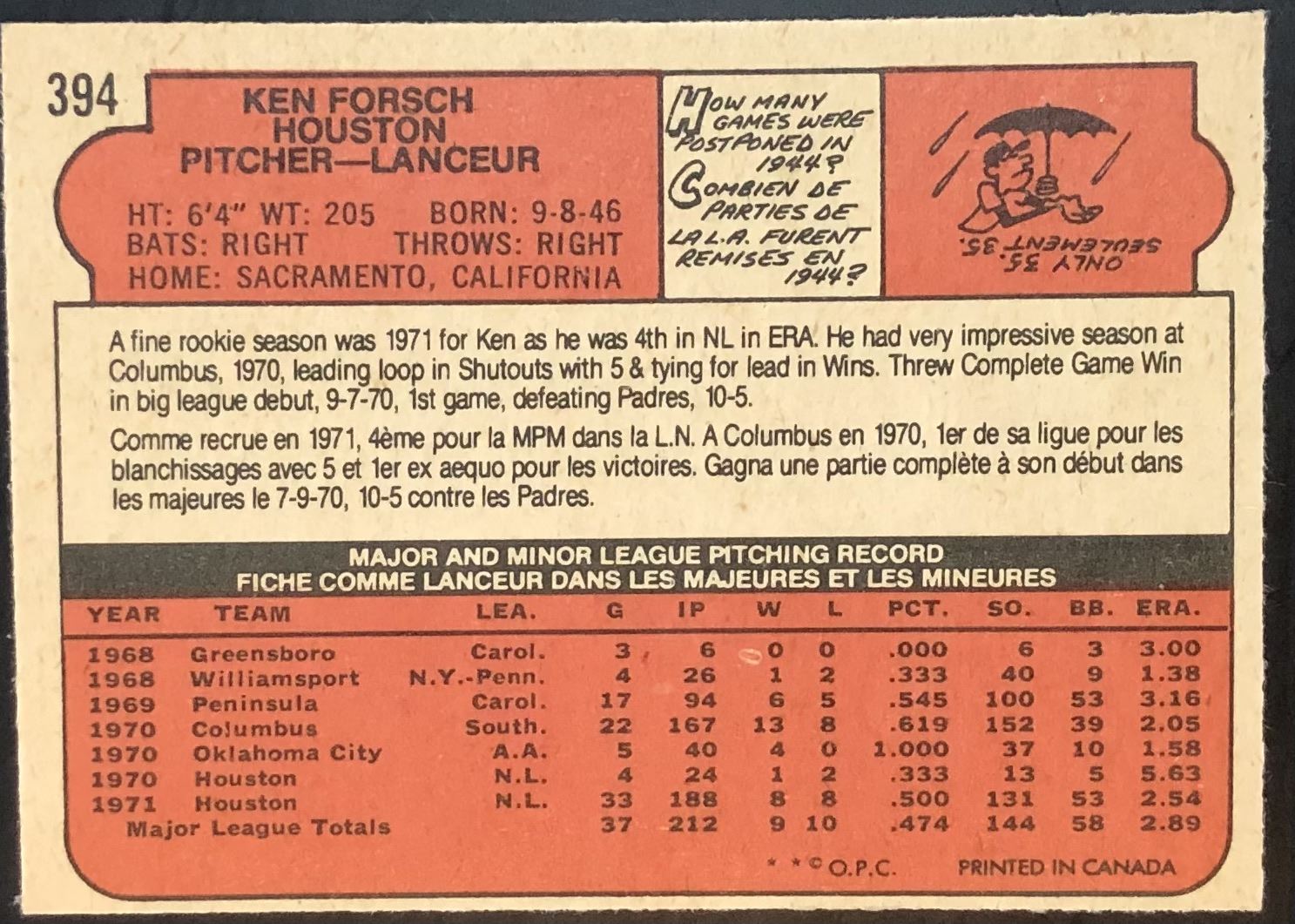 Card #394 OPC, vintage, MLB, baseball, rookie