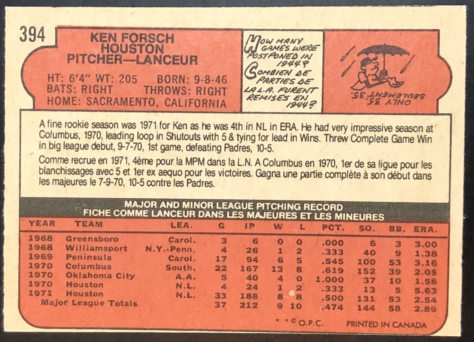 Card #394 MLB, baseball, vintage, OPC, rookie