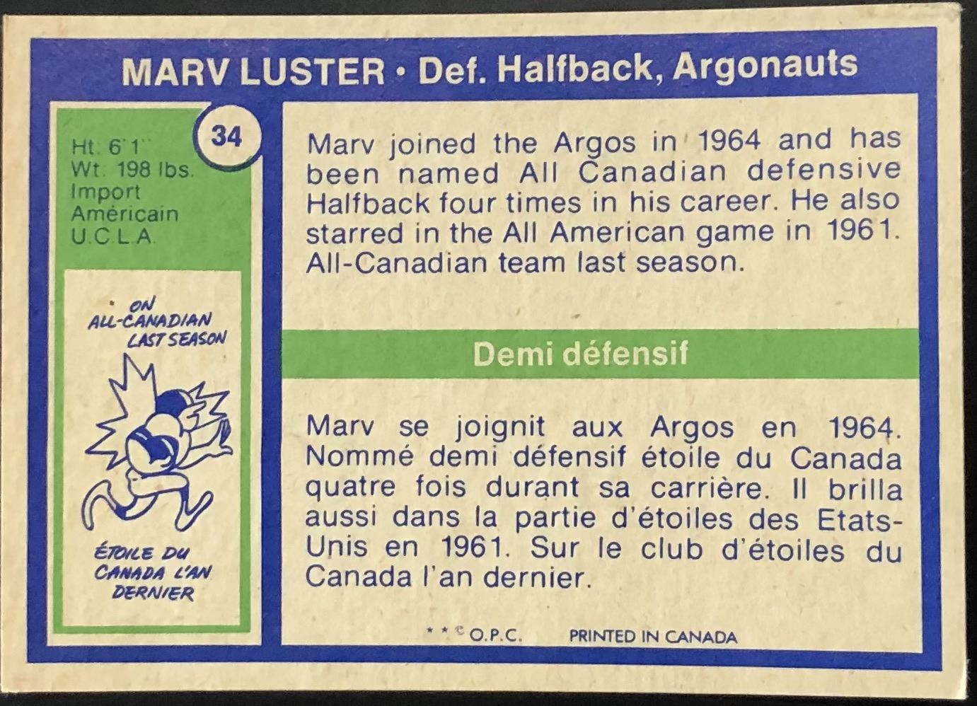 Card #34 football, CFL, OPC, vintage, hall of fame