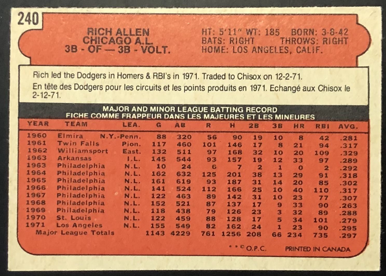 Card #240 MLB, baseball, vintage, OPC, hall of fame
