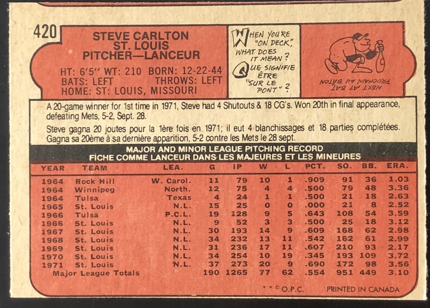 Card #420 OPC, vintage, MLB, baseball, hall of fame