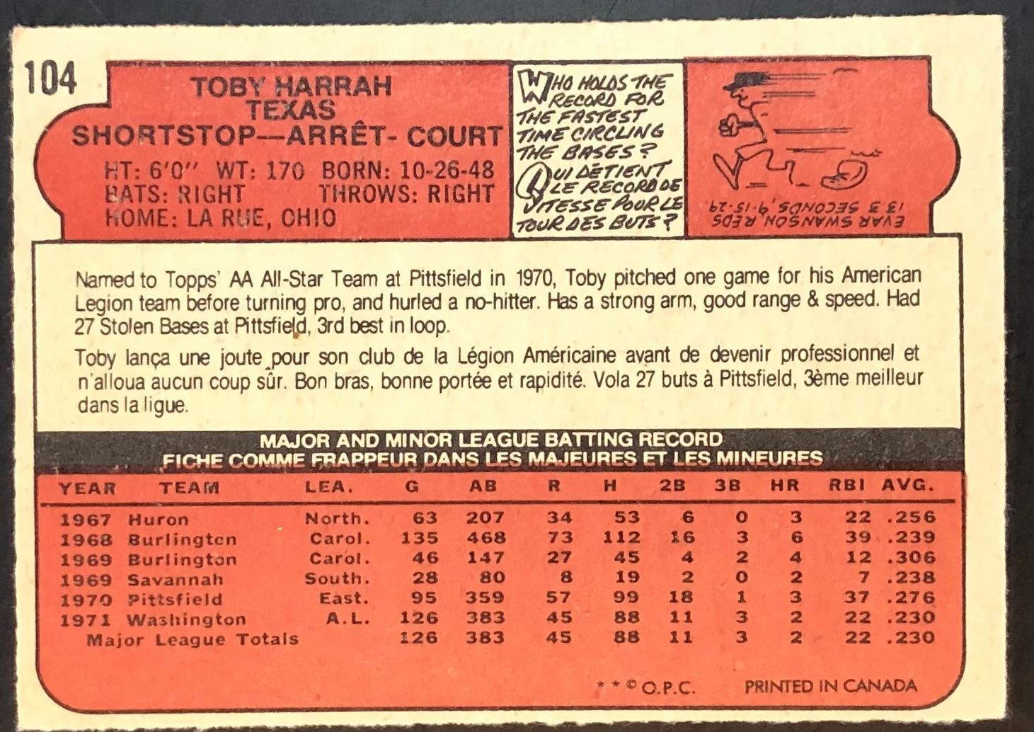 Card #104 OPC, vintage, MLB, baseball, rookie