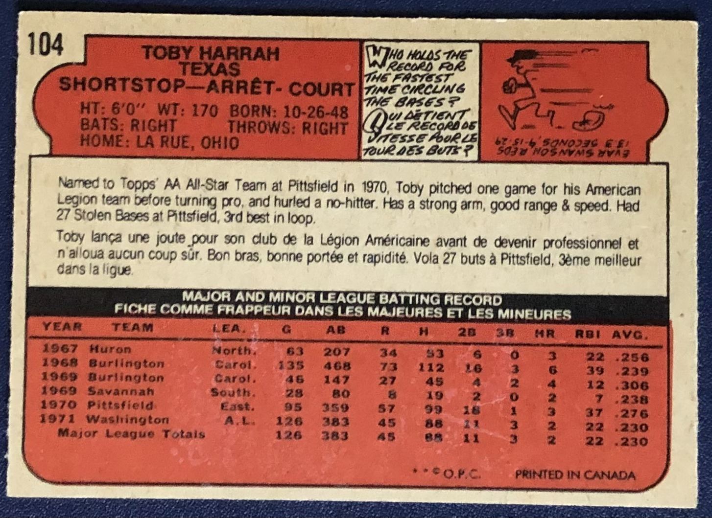Card #104 vintage, MLB, baseball, rookie, OPC