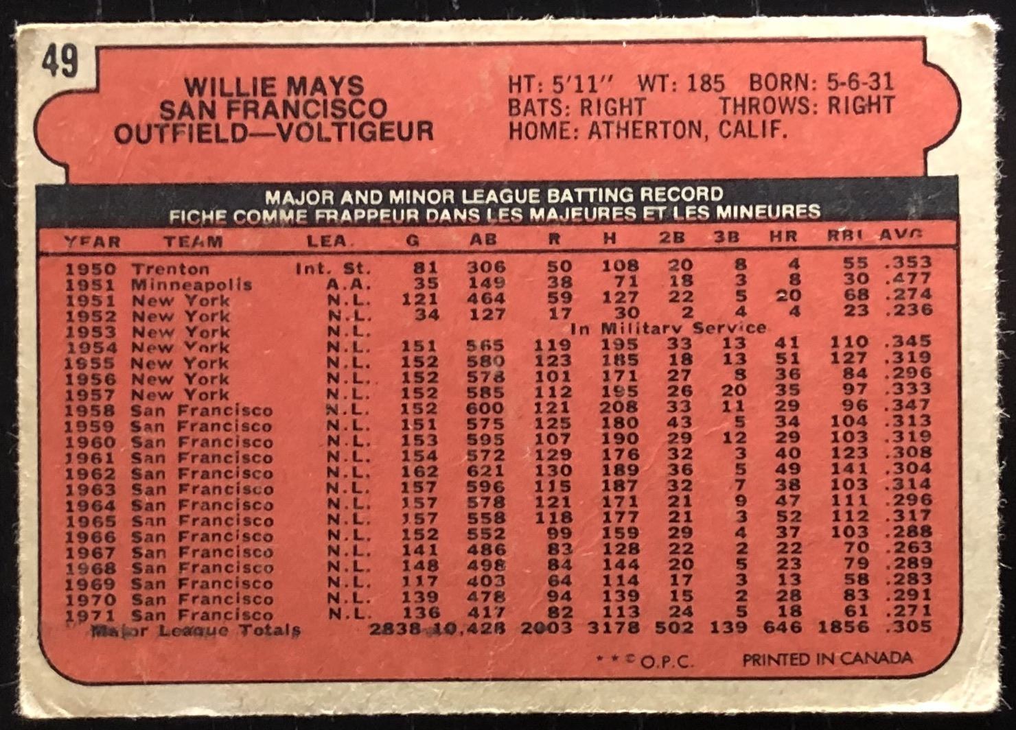 Card #49 MLB, baseball, vintage, OPC, hall of fame