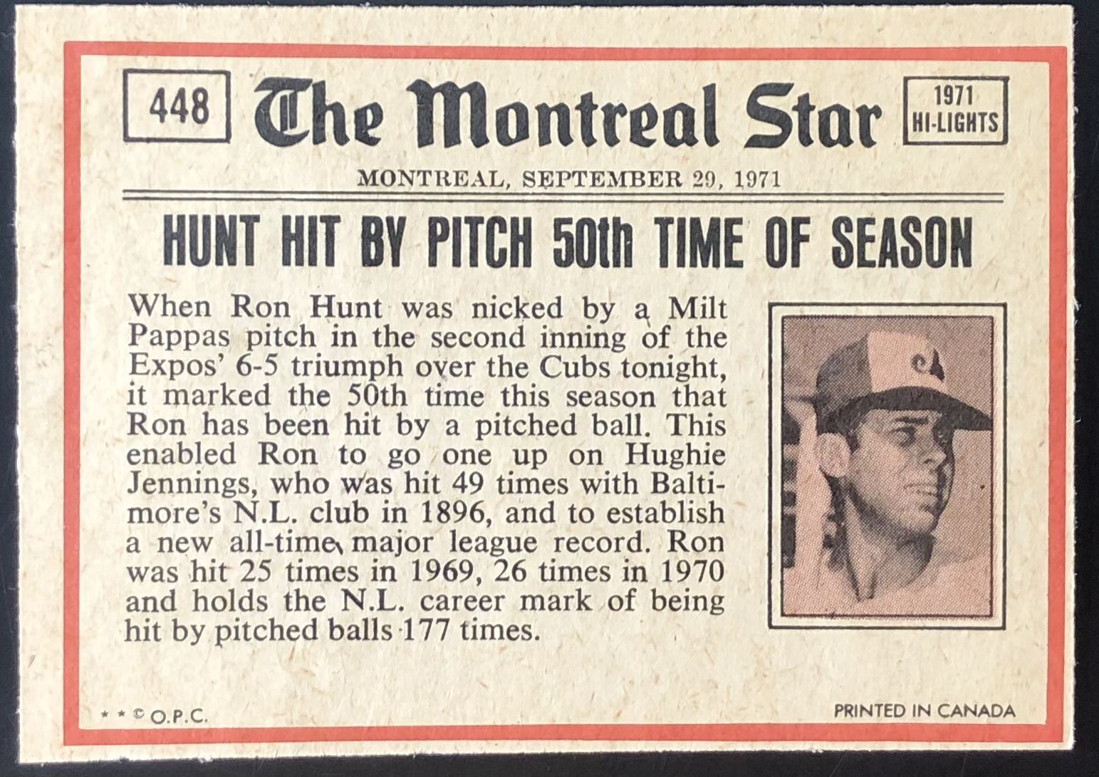 Card #448 OPC, vintage, MLB, baseball, hall of fame