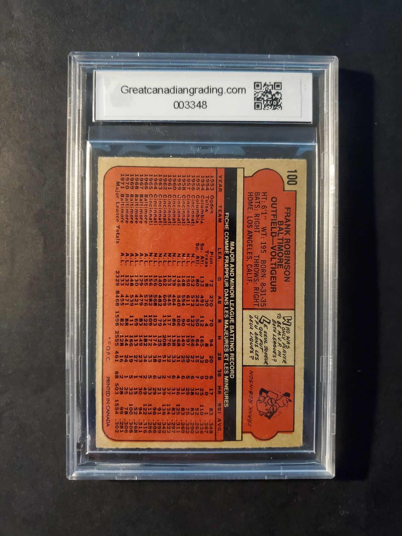 Clean early 70's O-Pee-Chee star card, graded by GCG at 6 (EX.MT)