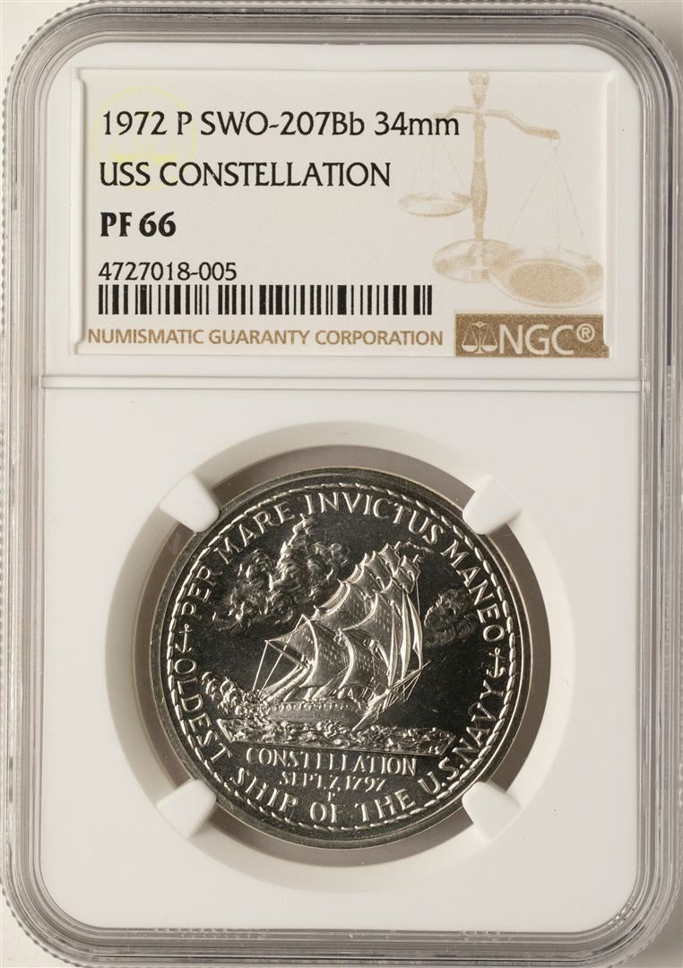 One 1972-P Proof SWO-207Bb 34mm USS Constellation Coin NGC PF66. NGC Certified.