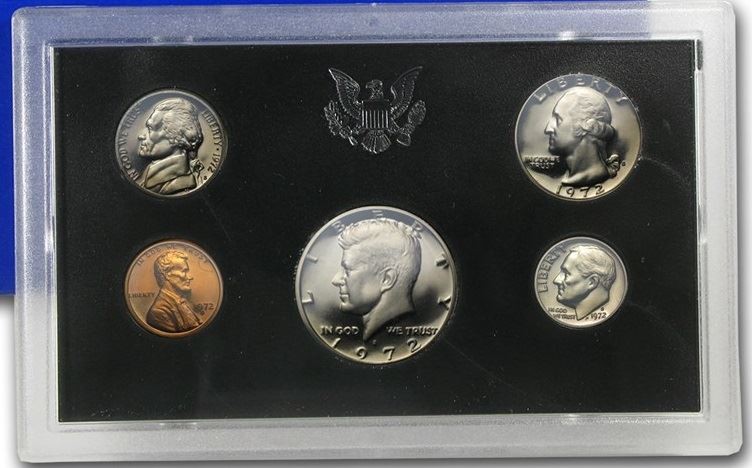 One 1972 Proof Coin Set. The paper box cover has some wear and scuffs.