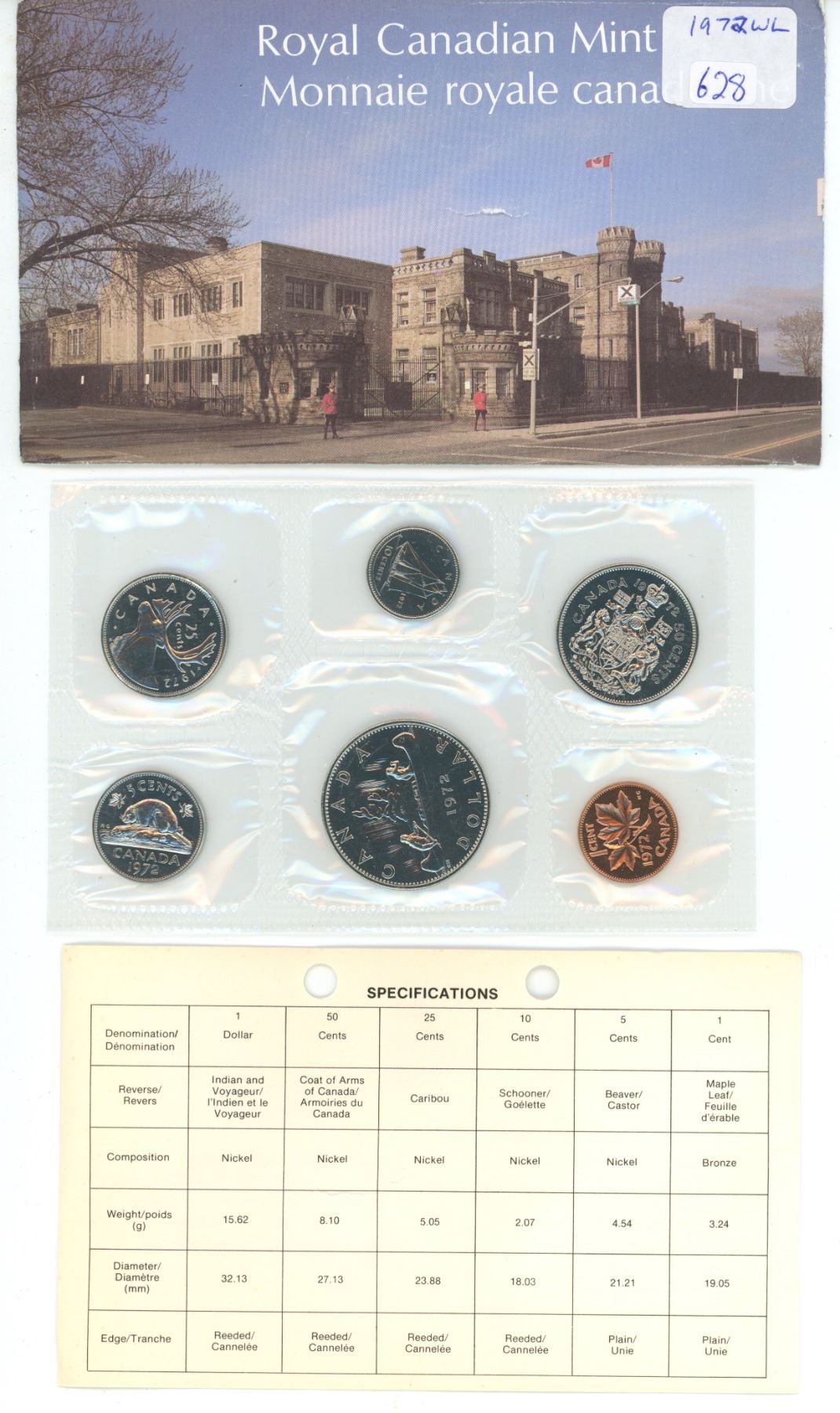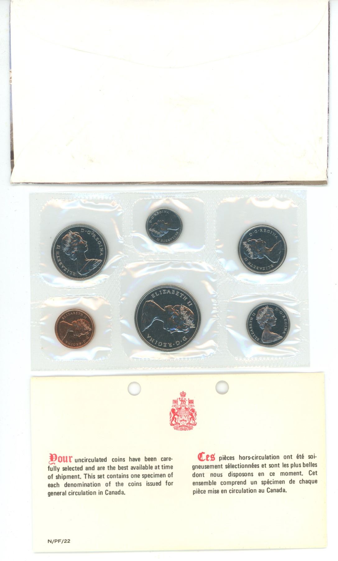 1972 Proof Like Set. 6-coin set as issued by the Royal Canadian Mint. The cent & 5 cents have Cameos.