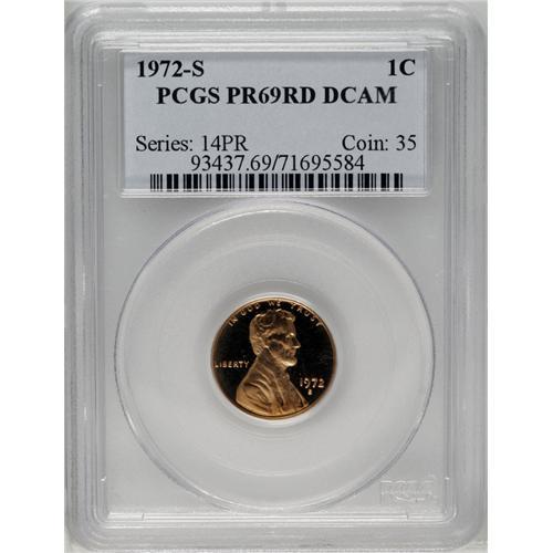 <B>1972-S<1C> PR69 Red Deep Cameo PCGS.</B></I> Pretty copper-orange color over virtually pristine, deeply cameoed surfaces. For accuracy, we mention a tiny toning spot on the shoulder, and another on the neck. The design elements are exquisitely brought up. Population: 60 in 69, 0 finer (7/06).<BR><I>From The Empire Tree Collection, Part Two.</B></I>