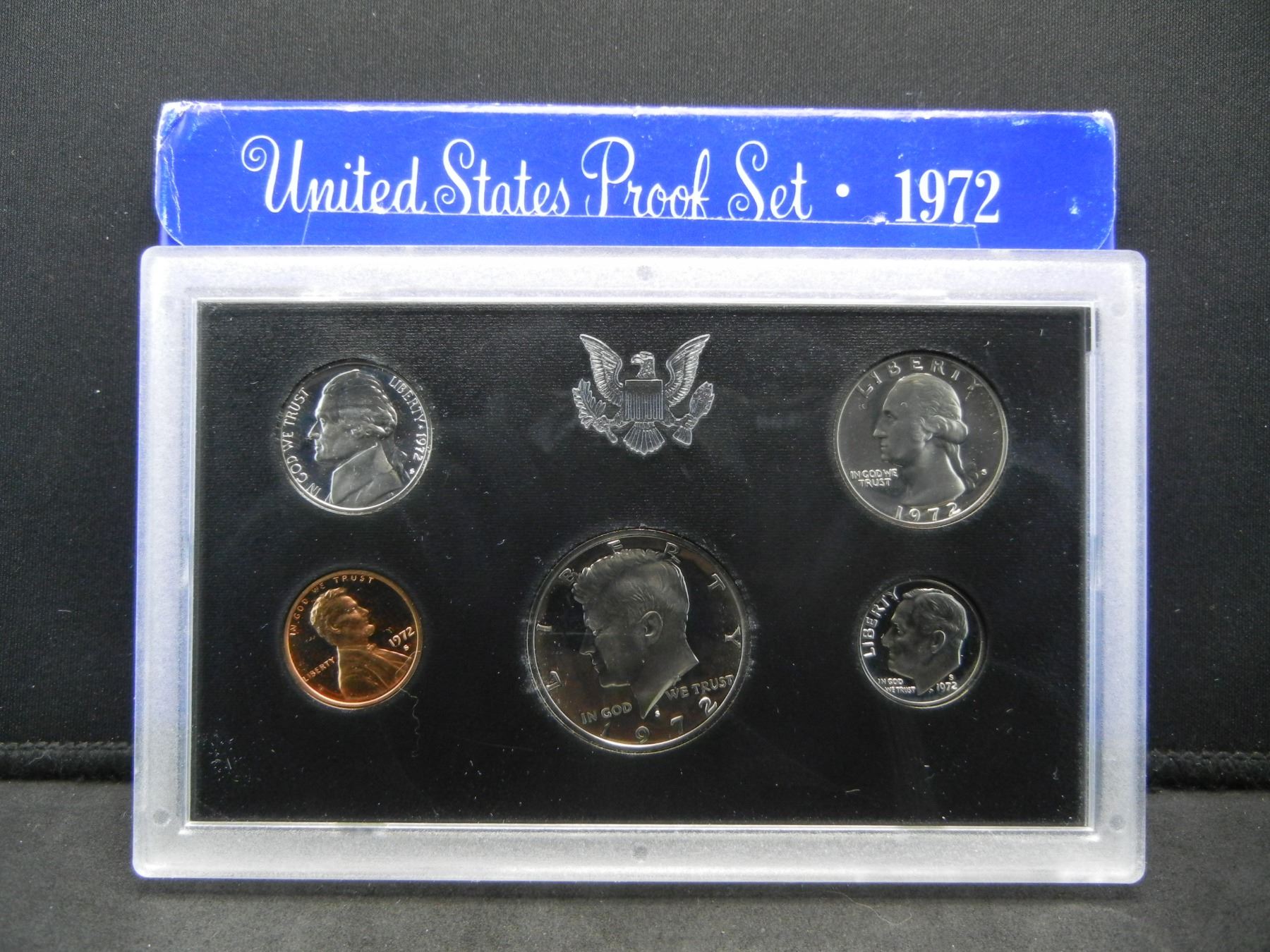 1972—S clad Proof Set. Regular coinage with cent through half.