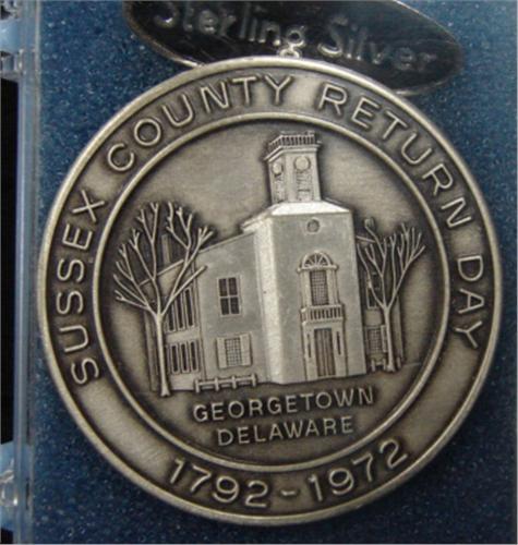 1972 SUSSEX COUNTY DELAWARE RETURNS DAY BICENTENNIAL MEDAL. Sterling Silver. #386.