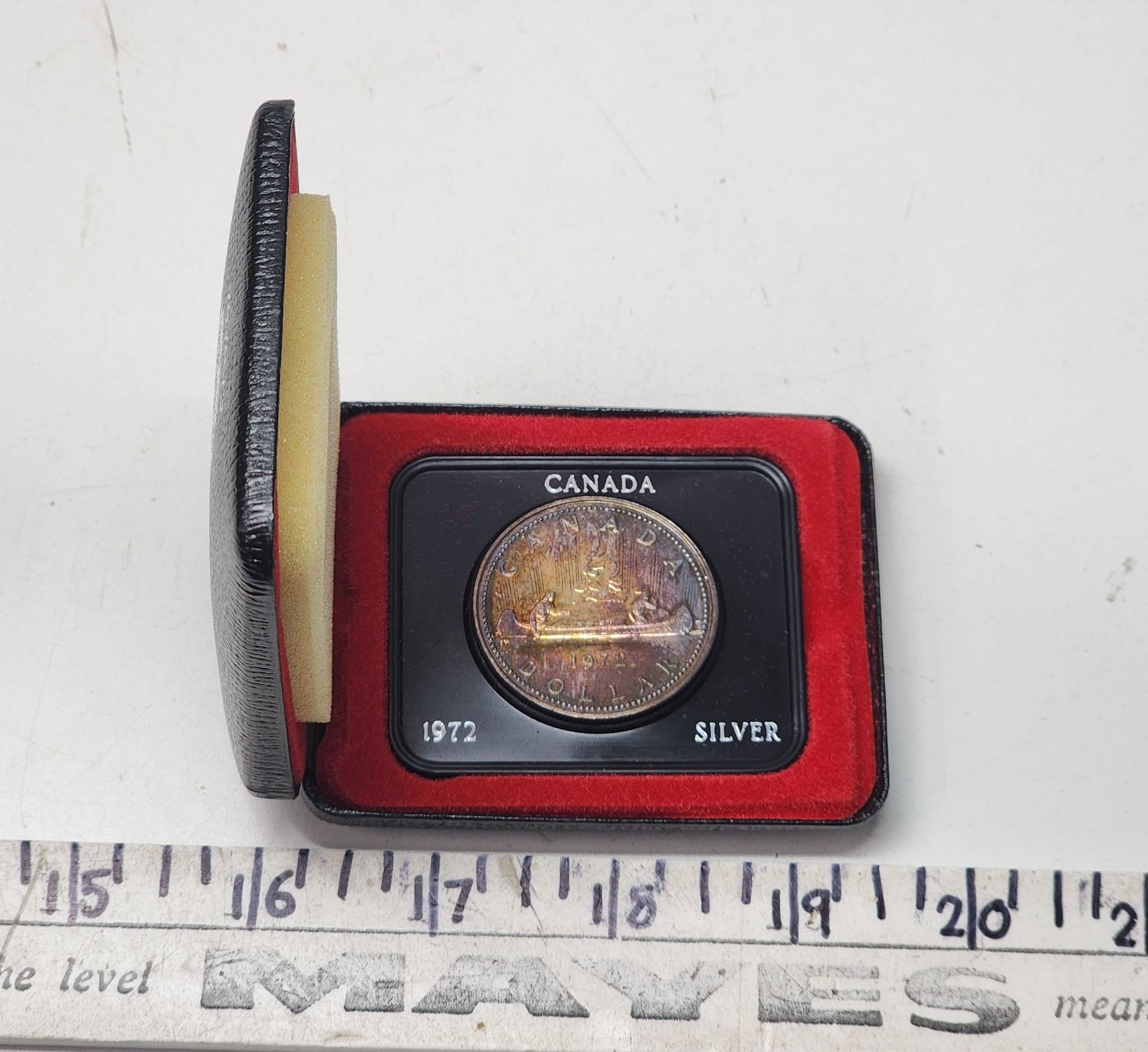 1972 Silver Dollar. Specimen. Beautifully Toned. Housed in its original RCM case of issue.